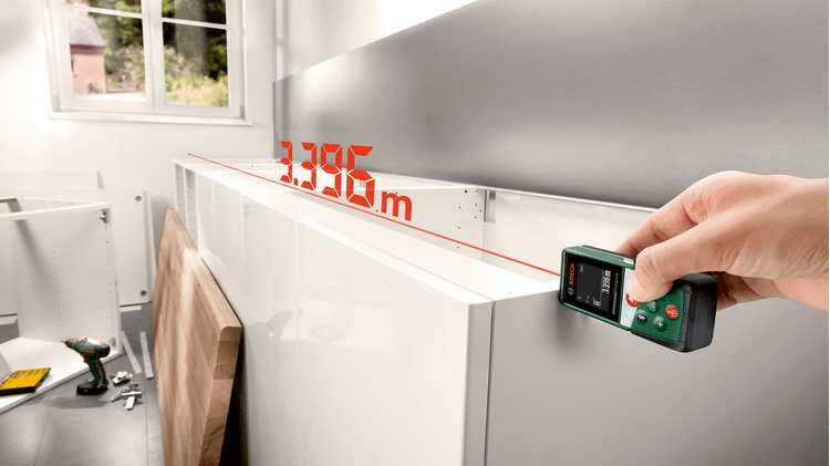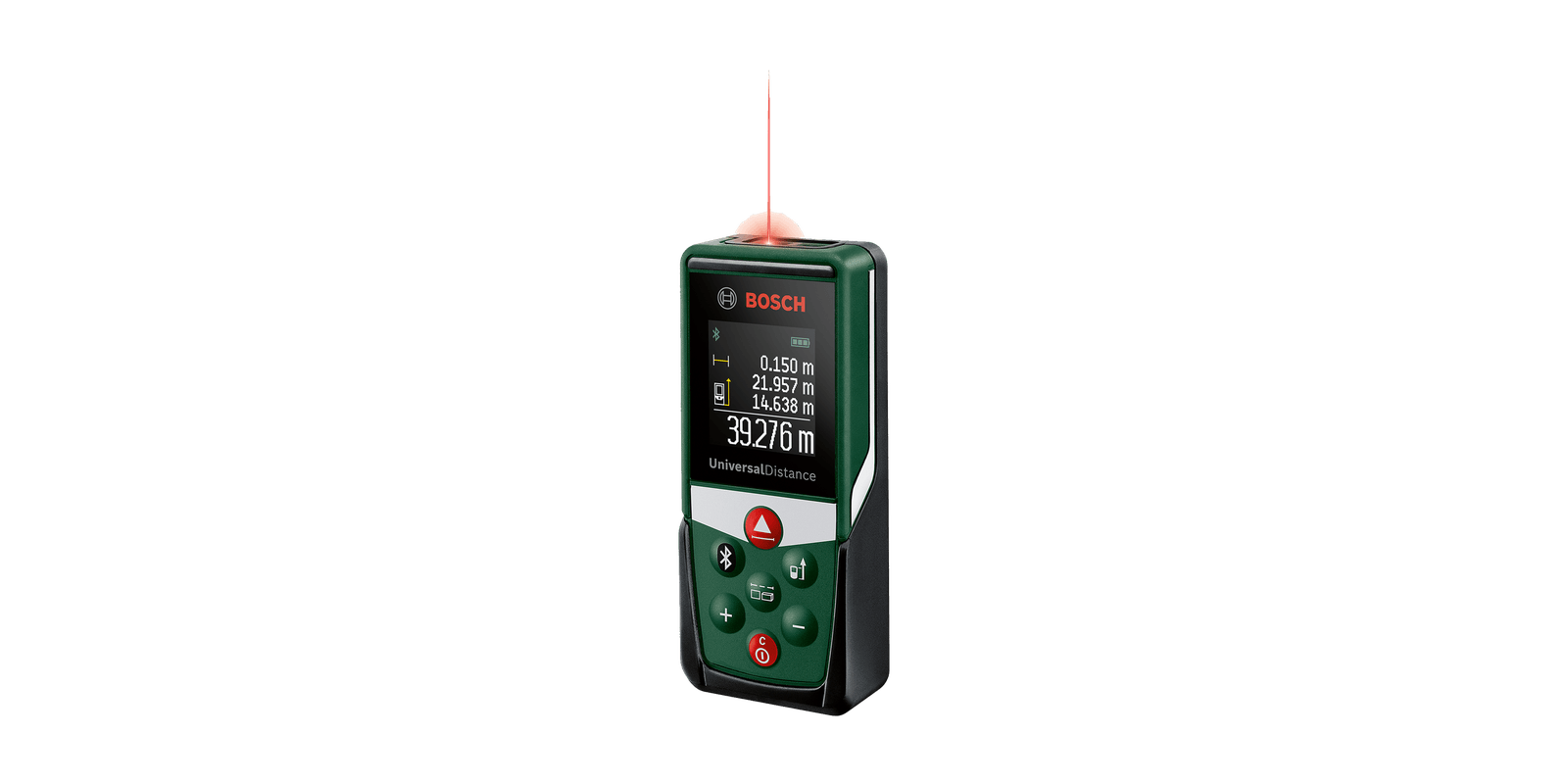 Planiranje renovacije na dohvat prstiju. UniversalDistance 40C mjeri udaljenosti do 40 m laserskom preciznošću i omogućuje određivanje veličine namještaja u tren oka. Ugrađene funkcije omogućuju izračun površina i volumena kako bi se odredila količina materijala potrebnog za poslove kao što su polaganje podova i postavljanje tapeta i bojenje zidova. Rezultati se prikazuju na visokokvalitetnom zaslonu u boji za optimalnu čitljivost. Svi se podaci mogu poslati u aplikaciju Bosch za digitalno dokumentiranje i projektno planiranje čime se štedi vrijeme i sprečavaju pogreške.