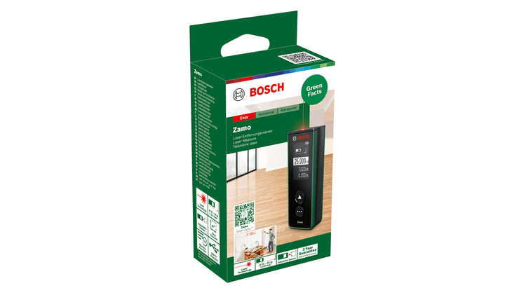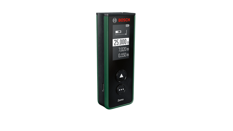 S laserskim daljinomjerom Zamo lako se određuje duljina ili visina prostorije za raspoređivanje namještaja ili izračunava površina podova ili zidova kako bi se odredila potrebna količina materijala (boje) za renoviranje. Kad se pozicionira i usmjeri Zamo jednim pritiskom gumba mjeri udaljenosti i opsege do 25 metra. Izračunava i površinu u kvadratnim metrima, pa je vrlo praktičan za utvrđivanje potrebnih količina tapeta, podnih obloga i drugih materijala. Kako bi stvari bile praktičnije, ovaj jednostavni alat ima dodatnu funkciju mjerenja putem tri adaptera: linijski za niveliranje slika i ostalih predmeta, valjkasti za mjerenje zaobljenih i neravnih površina i 1,5-metarski trakasti adapter za mjerenje samostojećih predmeta i opsega. Nije potrebno zapisivati svaku izmjerenu vrijednost kad se upotrebljava Zamo jer se radi o pametnom uređaju koji sprema 10 zadnjih izmjerenih vrijednosti. Ovaj praktični laserski daljinomjer uvijek je ažuriran i spreman za upotrebu: ugrađeni USB-C® priključak jamči jednostavno punjenje i ažuriranje softvera.