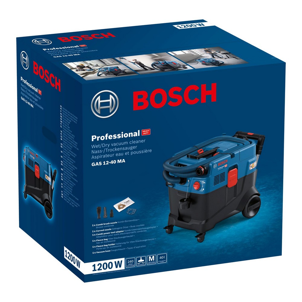 Bosch GAS 12-40 MA Professional usisava veliku većinu materijala, kako na mokro tako i na suho, a posebice finu i jaku prašinu koja nastaje prilikom rezanja betona, brušenja, rezanja žbuke i brušenja suhozida. Nudi vam visoku zaštitu za održavanje čistoće zraka koji udišete i kontinuirano snažno usisavanje za vrlo učinkovito usisavanje prašine kako biste brže obavili svoj posao.