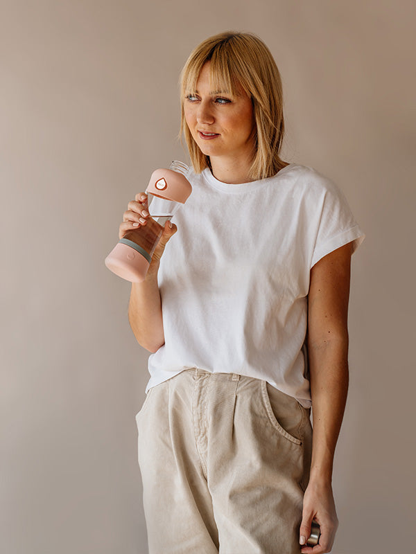 Njegujte svoje navike hidratacije i smanjite plastični otpad uz Active Peach staklena bocu. Praktičan dizajn jednostavan za držanje u rukama i svjež izgled pomoći će vam u dnevnoj hidratizaciji.