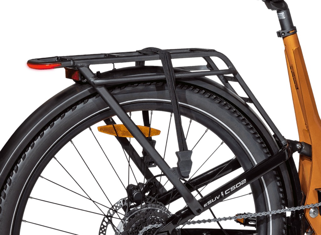 - Praktičnost i sigurnost - C502 SUV pruža izvanrednu udobnost priv vožnji zahvaljujući prednjoj i stražnjoj suspenziji koja učinkovito upija udarce i neravnine, čineći vožnju glatkom i ugodnom na svim terenima. Čvrsti nosač s integriranim stražnjim svjetlom i prednje svjetlo dodatno povećavaju sigurnost, a bicikl nudi dovoljno prostora za pohranu vaših stvari.