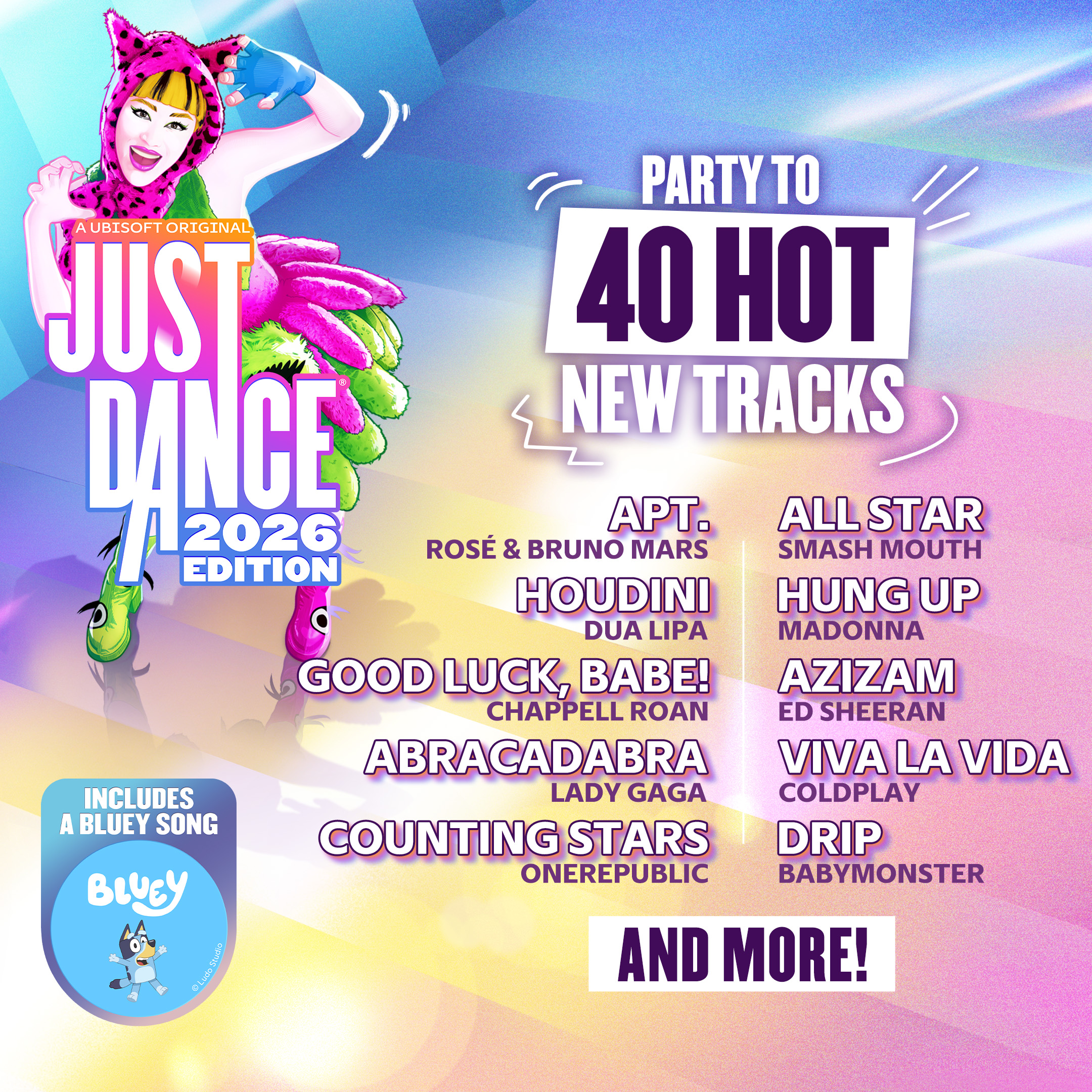 Okupite prijatelje i obitelj i pretvorite svoj dom u plesni podij uz Just Dance 2026 Edition, s čak 40 novih uzbudljivih pjesama! Od hitova s top lista do bezvremenskih klasika – za svakoga ima ponešto.