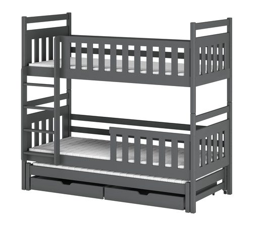 Drveni dječji krevet na kat Klara s tri kreveta i ladicom, 200 x 90 cm, grafitID EK000515252
