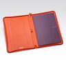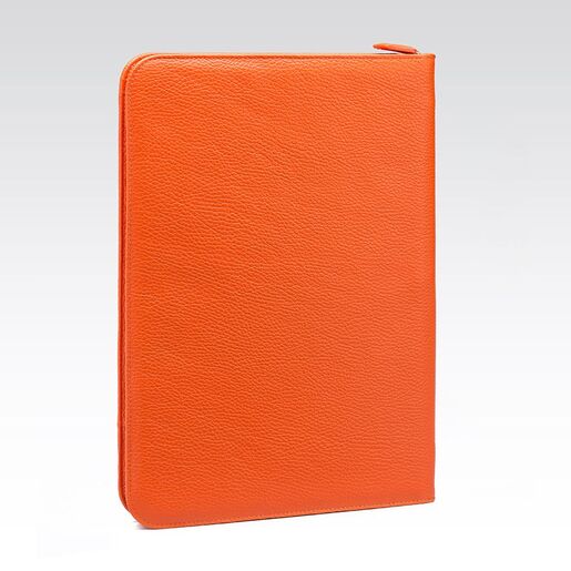 Navlaka od teleće kože obojene na bubnjem, sa dva džepa za olovke sa strane, tri utora za kredit ili posjetnice. Zatvaranje patentnim zatvaračem samo za veličinu A4. Unutarnja bilježn...