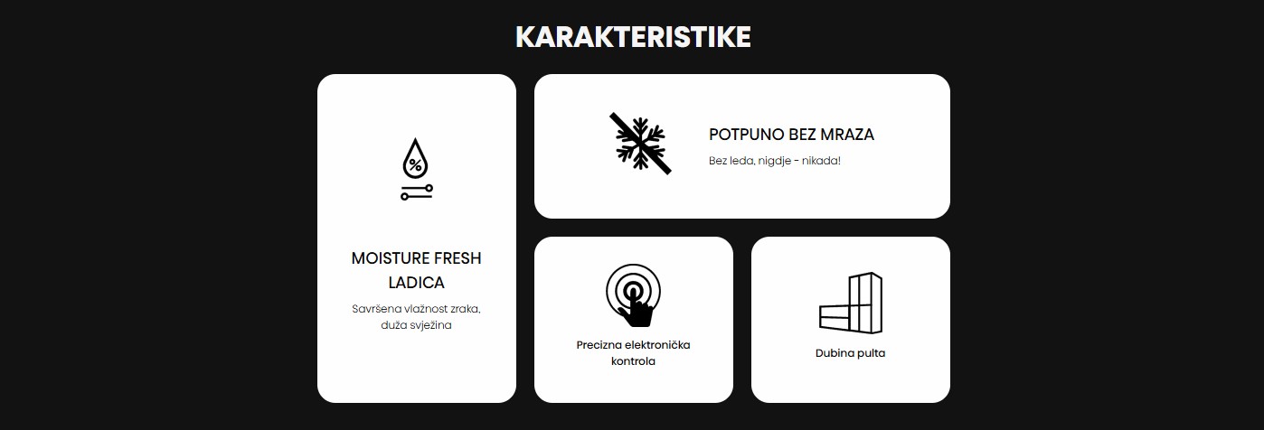 Pruža odgovarajuću mikroklimu koja duže održava hranu svježom i hranjivom. U frižideru se ne može naći led, što znači da ne morate izgubiti svoje dragocjeno vrijeme na odmrzavanje.