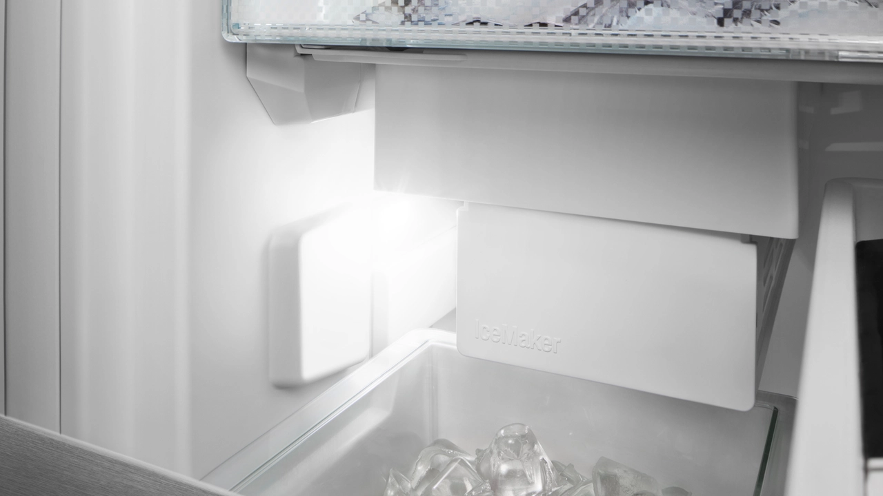 Svakodnevno si priuštite mali osjećaj sreće: Jednostavno bacite pogled na svježe kockice leda. Rasvjeta u ledomatu IceMaker daje završni dodir vašim kockicama leda. LED rasvjeta aktivira se automatski pri otvaranju vrata. Pogled na osvijetljene kockice leda budi zadovoljstvo i apetit za dobro rashlađen napitak.