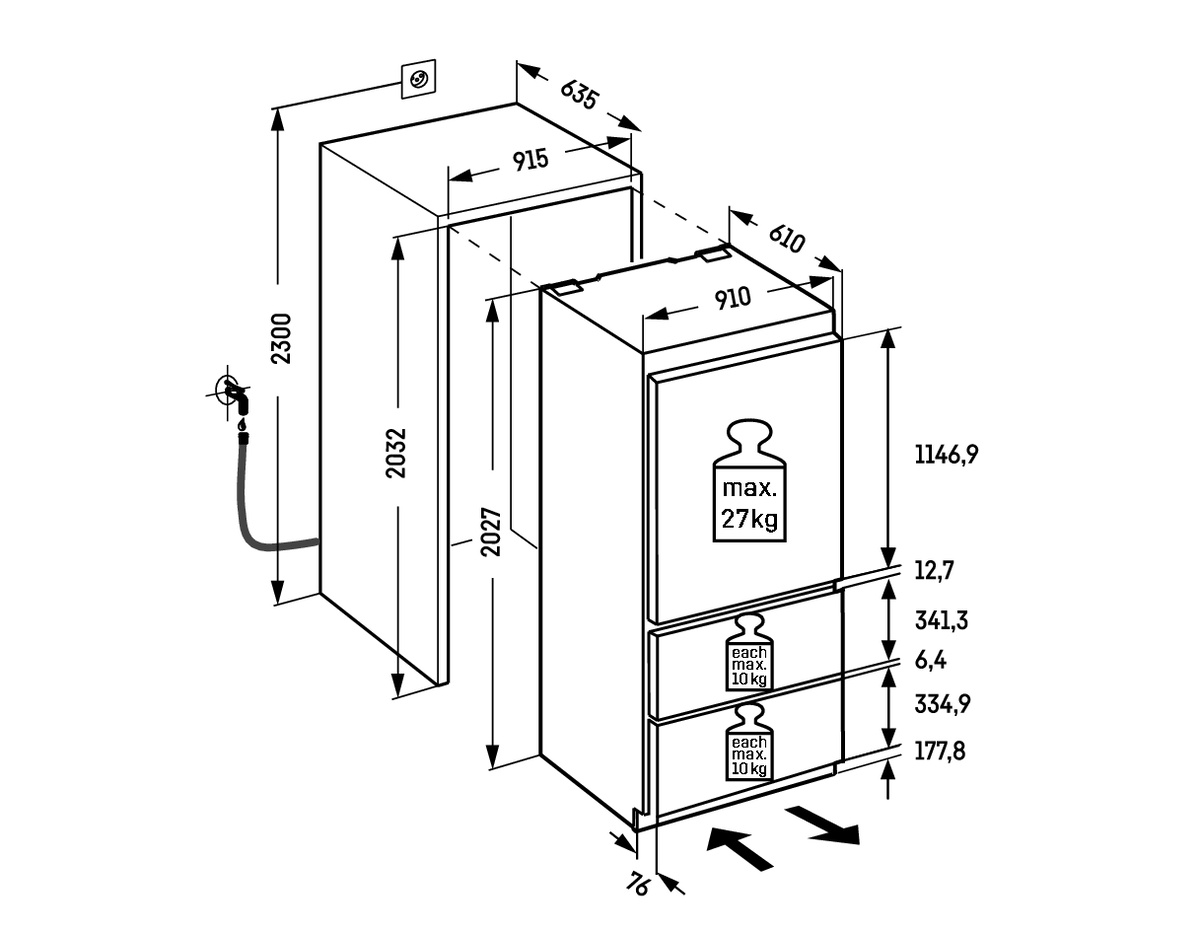| Dimenzije niše u cm (V/Š/D): | 203,2 - 207,2 / 91,5 / 63,5 cm |