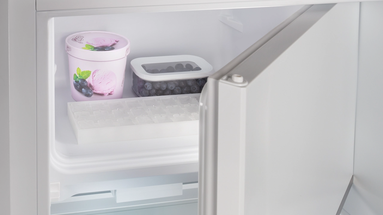 Zveckanje kockica leda u čaši uvijek otvara apetit i veseli. Zbog toga je posuda za kocke leda u pretincu zamrzivača klasični pribor kojega se ne možete odreći. S posudom za kocke leda u vašem hladnjaku Liebherr možete proizvesti zalihe od 21 kockice leda. Veličinu kockica sami određujete odgovarajućom količinom vode.