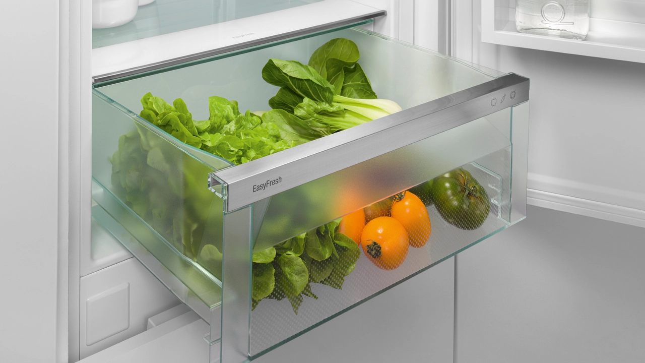 Jamstvo svježine kao na tržnici u vašem domu jest naš pretinac EasyFresh. Bilo da je riječ o nepakiranom voću, povrću ili plodovima: ovdje ćete sve skladištiti na optimalan način. A zahvaljujući nepropusnom zatvaranju, povećava se vlaga u zraku u pretincu i unutar namirnica. Na taj način namirnice dugo ostaju svježe.