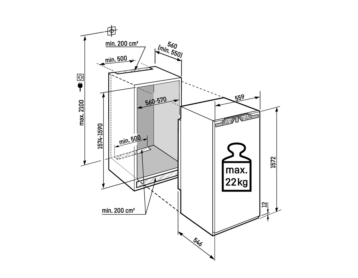 | Dimenzije niše u cm (V/Š/D): | 157,4 - 159 / 56 - 57 / 55,0 cm |