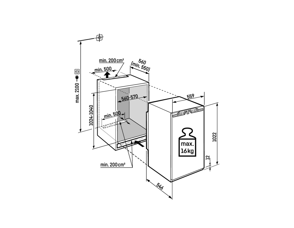 | Dimenzije niše u cm (V/Š/D): | 102,4 - 104 / 56 - 57 / 55,0 cm |