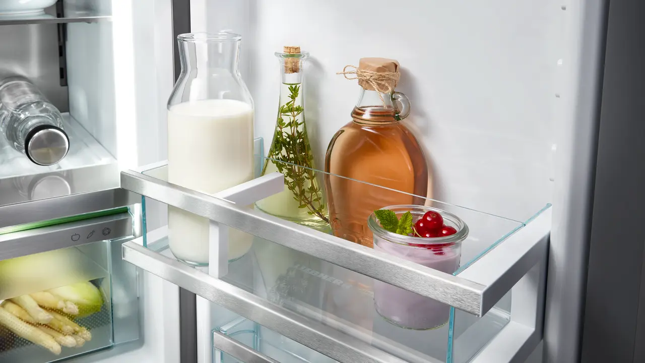 Trebate li u hladnjak spremiti veliku posudu? Onda jednostavno podesite visinu staklenih polica. Zahvaljujući komfornom namještanju po visini to se odvija brzo i individualno – čak i s namirnicama na pločama.