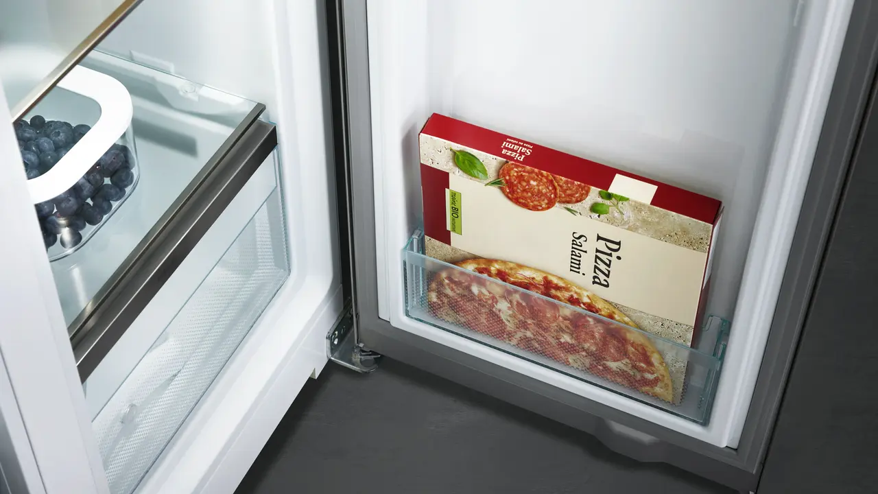 Vaš vam Liebherrov uređaj omogućuje da iskoristite svaki centimetar – čak i vrata zamrzivača. Praktične police u vratima u pretincu za zamrzavanje mogu se lako prilagoditi pri vrhu ili dnu pretinca za zamrzavanje. Ima mjesta čak i za kutije pizze. Zahvaljujući prozirnom dizajnu i ugrađenoj rasvjeti uvijek ćete jasno vidjeti što se u njima nalazi.