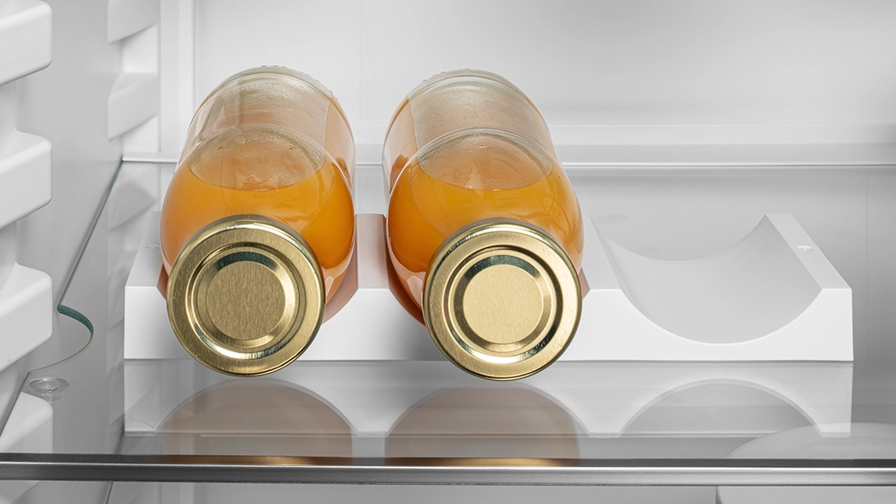 Sada boce ostaju na svom mjestu. Uz policu za boce uvijek su vam spremne tri boce napitka po želji. Stalak za boce pristaje na svaku staklenu policu te je time vrlo fleksibilan. Ako vam je potrebno više prostora na drugom mjestu, jednostavno izvadite stalak za boce iz hladnjaka.