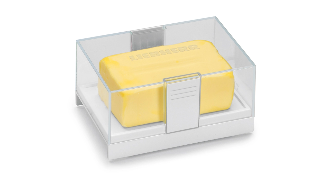 Kada je riječ o posudi za maslac, trebali biste postavljati visoke zahtjeve. Ta bi posuda trebala biti bezvremenski lijepa i optimalno pristajati u unutrašnjost vrata hladnjaka. Kroz prozirni poklopac uvijek vidite koliko još maslaca imate. Osim toga, poklopac i dno posude, koji su perivi u perilici posuđa, toliko sigurno sjedaju jedan na drugi da posudu možete jednom rukom nositi držeći je za poklopac.