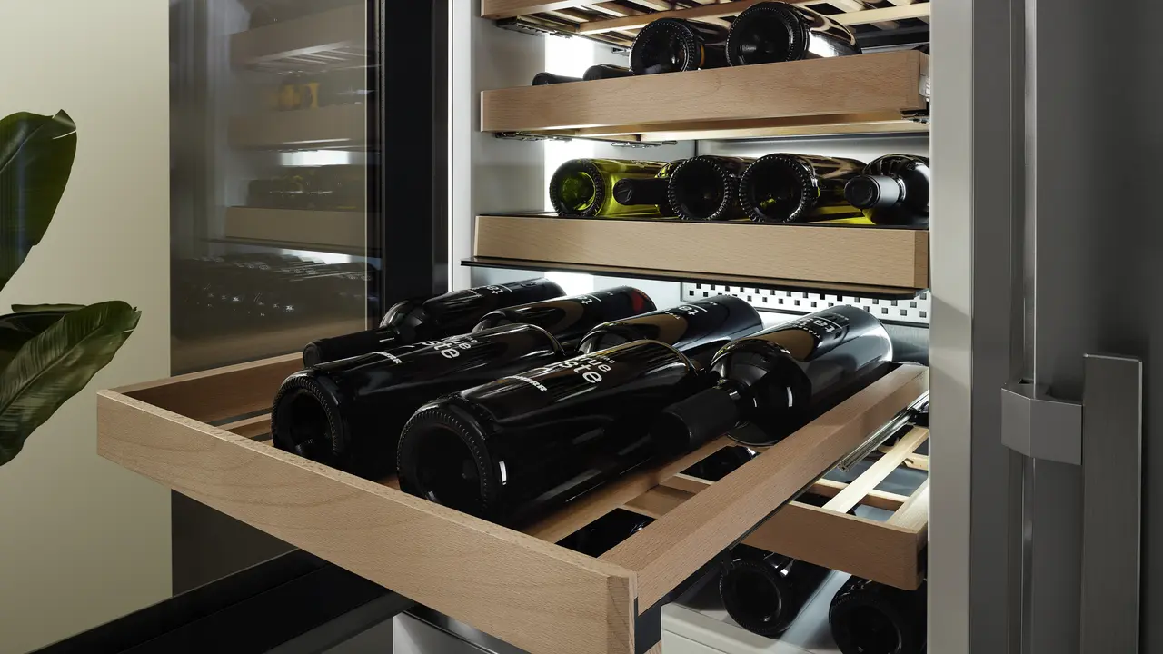 Vinu su potrebni mir i tišina. Zato naš odjeljak za temperiranje vina jamči mirno čuvanje uz posebno projektirane i osobito tihe kompresore tvrtke Liebherr te stabilne drvene police izrađene od punog bukovog drva. To vinu omogućuje dozrijevanje u tišini i miru.