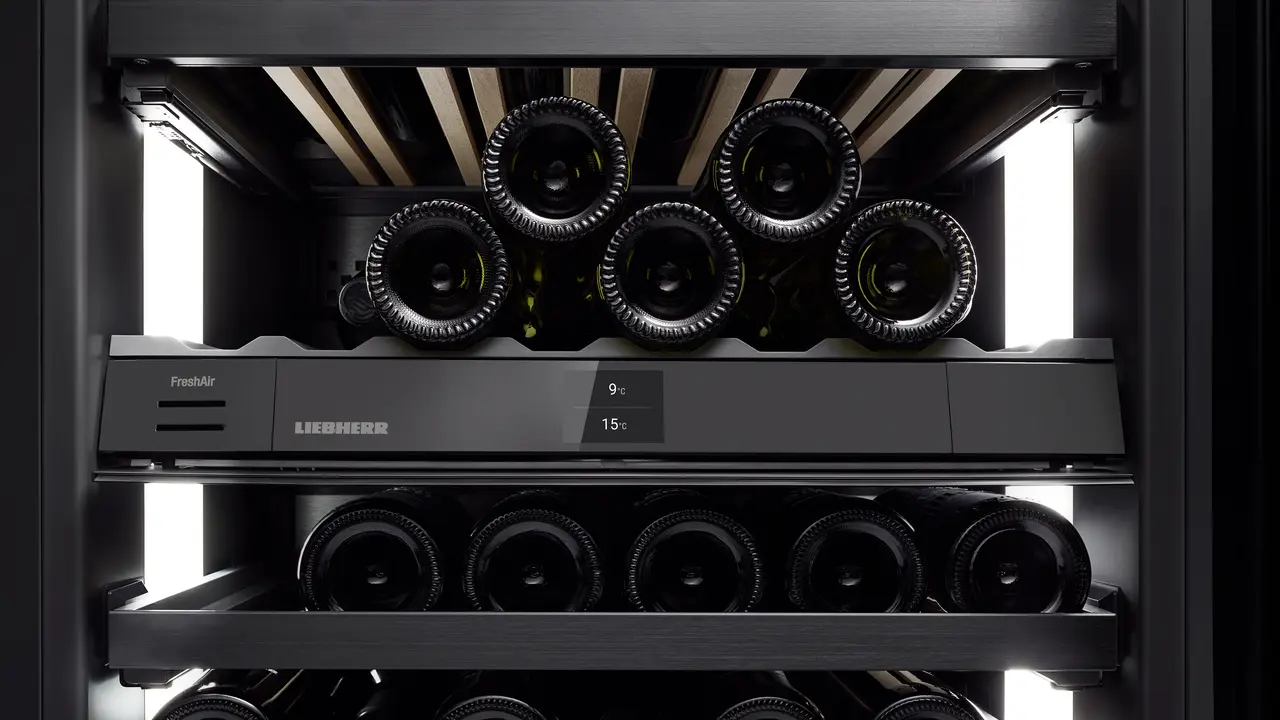 Da bi vino moglo dozrijevati pri optimalnoj kvaliteti zraka, sve Liebherrove vitrine za temperiranje vina opremljene su filterom s aktivnim ugljenom koji pouzdano veže sve vrste mirisa. Time se održava čisti bouquet vina. A da bi takav i ostao, Liebherr vas svakih šest mjeseci podsjeća da promijenite filter, što jednostavno možete učiniti sami.