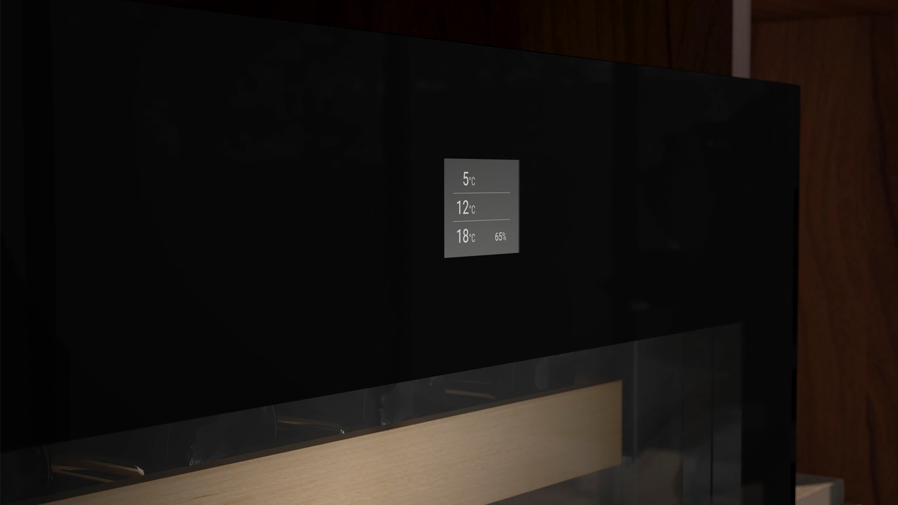 Održavajte savršene uvjete temperiranja u svom uređaju za hlađenje vina bez otvaranja vrata. Stakleni zaslon Touch & Swipe koji reagira na dodir omogućuje vam da se lako krećete elegantnim sučeljem i upravljate temperaturom i razinom vlažnosti putem zaslona živopisnih boja. Čak i kada nije u upotrebi, zaslon pruža novosti o temperaturi svake zone u stvarnom vremenu.