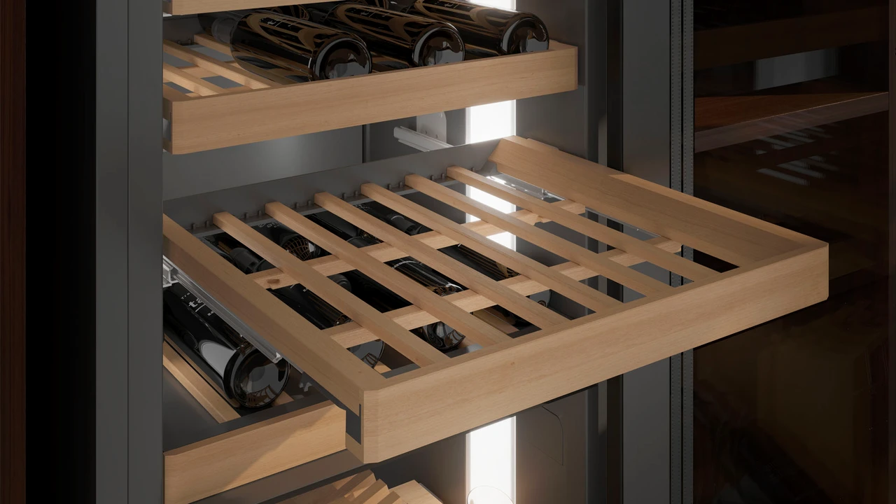 Istraživanje kolekcije vina postalo je još ugodnije. Pažljivo dizajnirane nježne teleskopske vodilice na rashladnim uređajima Vinidor Selection osiguravaju neometano izvlačenje i vraćanje polica za vino, čime se uznemiravanje vina svodi na najmanju moguću mjeru, što vam praktičnošću omogućuje da jednostavno uživate u odabiru vina koje odgovara vašem ukusu.