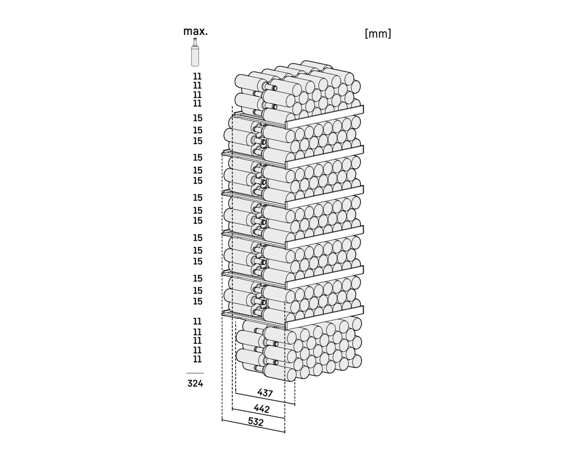 Zrelo i sofisticirano. Elegantne police izrađene od bukovine smanjuju vibracije, omogućuju vodoravno polaganje vinskih boca, a ergonomskim oblikom olakšava stavljanje, vađenje i premještanje boca. Druga je prednost to što drvo diše te u sebi može čuvati manje količine vode, što je dobro za unutrašnju mikroklimu, a time i dugoročno čuvanje.