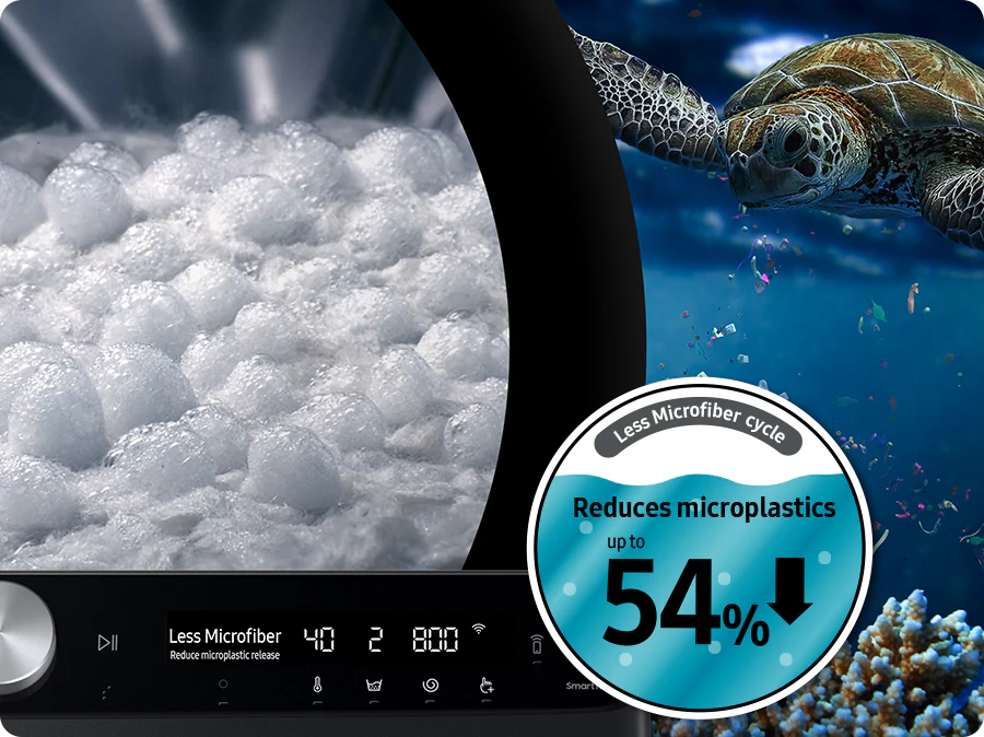 Ciklus s manje mikrovlakana djeluje tako da odjeća ostavlja manje mikroplastike koja se ispušta u ispusnu vodu. Optimiziranjem brzine okretaja motora i intenziteta pranja ciklus s manje mikrovlakana smanjuje količinu mikrovlakana ispuštenih u ispusnu vodu do 54%.