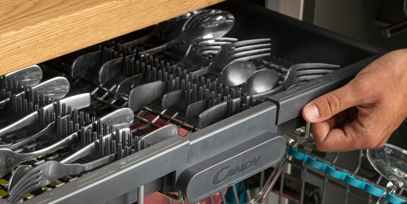 Treća košara novog Candy Rapida opremljena je inteligentnom legendom koja jasno pokazuje gdje staviti pribor za jelo za najbolje rezultate čišćenja.
