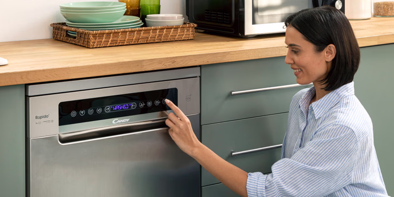 Smart Door sustav je sustav automatskog otvaranja vrata perilice posuđa nakon završetka ciklusa pranja. Na novim Candy Rapido' perilicama možete ga aktivirati da se vrata otvaraju naklon svatkog pranja. Prilikom faze sušenja, vrata će se otvoriti nekoliko centimetara, omogućujući zraku da cirkulira i na taj način ubra proces sušenja na prirodan način. Trajanje programa će se promijeniti, kao i potrebna temperatura prilikom ispiranja te na taj način omogućiti uštedu energije.