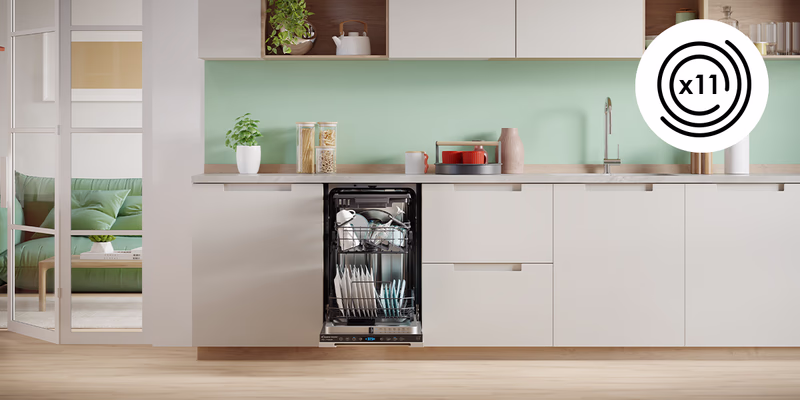 Prva SLIM perilica posuđa na svijetu koja savršeno i učinkovito pere do 11 kompleta posuđa.