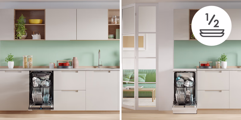 Sada možete mirne savjesti staviti prati i manju količinu posuđa. Odaberite funkciju Pola punjenja na vašoj Candy Rapido' perilici posuđa i uštedite do 10% električne energije i vode.