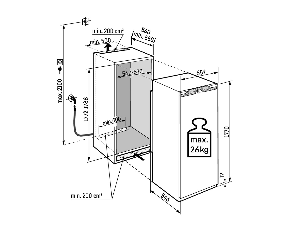 | Dimenzije niše u cm (V/Š/D): | 177,2 - 178,8 / 56 - 57 / 55,0 cm |
