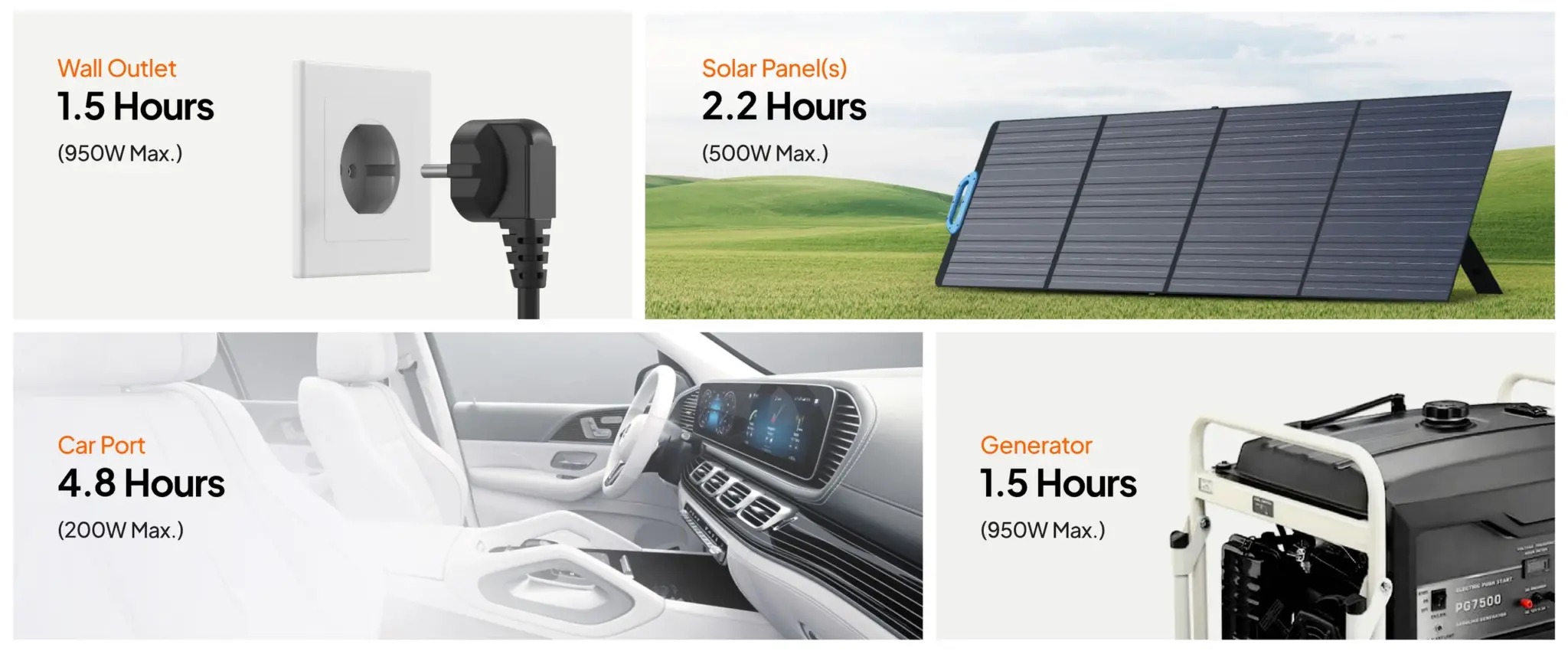 AC70P vam pruža slobodu da punite svoje uređaje na način koji vam najviše odgovara: putem zidne utičnice, solarno, u automobilu, putem generatora ili punjenjem LiFePO4 baterije. Bilo da ste kod kuće, na putu ili na otvorenom, uvijek možete pronaći odgovarajući izvor energije za AC70P.