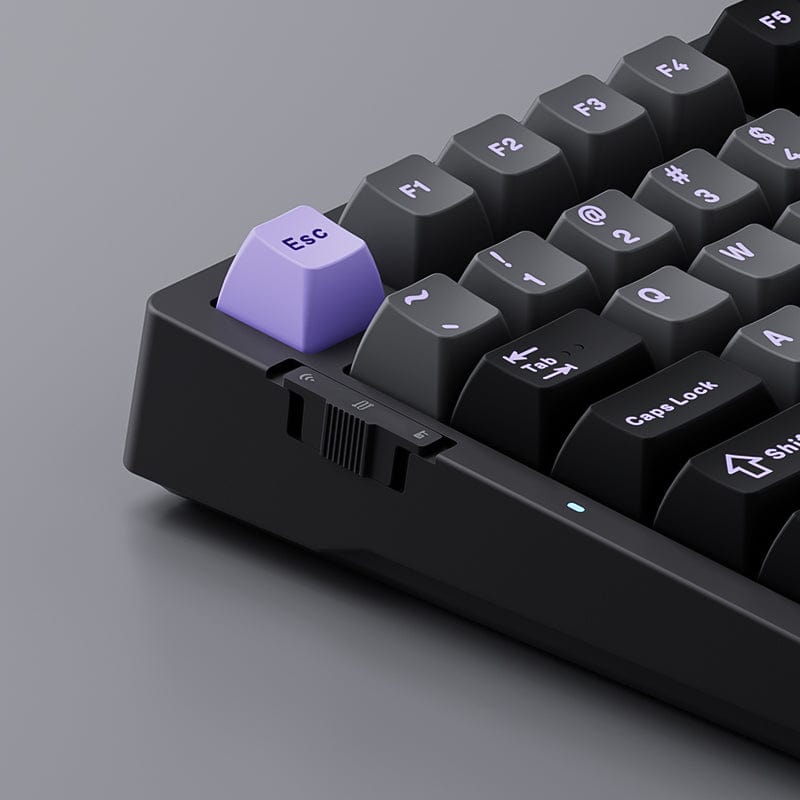 Minimalistička bočna ploča s magnetnim zatvaračem diskretno skriva ugrađeni 2.4GHz prijamnik, omogućujući praktično spremanje i jednostavan pristup. Elegantno rješenje spaja funkcionalnost i estetiku. Na gornjoj lijevoj strani tipkovnice nalaze se tri intuitivne opcije za brzo prebacivanje između bežičnog, Bluetooth i žičnog načina rada.