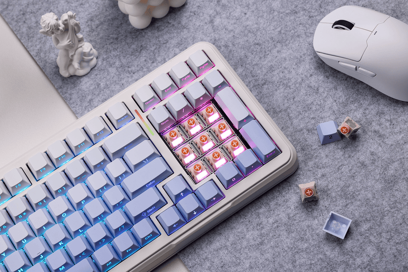 Uživaj u glatkom, mekom osjećaju tipkanja s Hyacinth prekidačima, izrađenima s najlonskom konstrukcijom za savršeno uravnotežen odziv i tihu, ugodnu akustiku. Nude prepoznatljiv, nježan „thock“ zvuk i vrhunski osjećaj pod prstima, idealan za dugotrajno tipkanje i ugodno ASMR iskustvo.