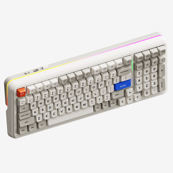 Od anodizirane ili PVD zrcalne stražnje ploče do precizno oblikovanih tipki, svaki element dizajna K99 V2 tipkovnice odražava predanost estetici i funkcionalnosti. Elegantne linije u kombinaciji s RGB svjetlosnom trakom koja okružuje tipkovnicu stvaraju sofisticiran i skladan vizualni dojam — tipkovnicu koja izgleda jednako dobro koliko i djeluje.
