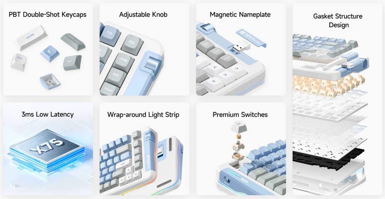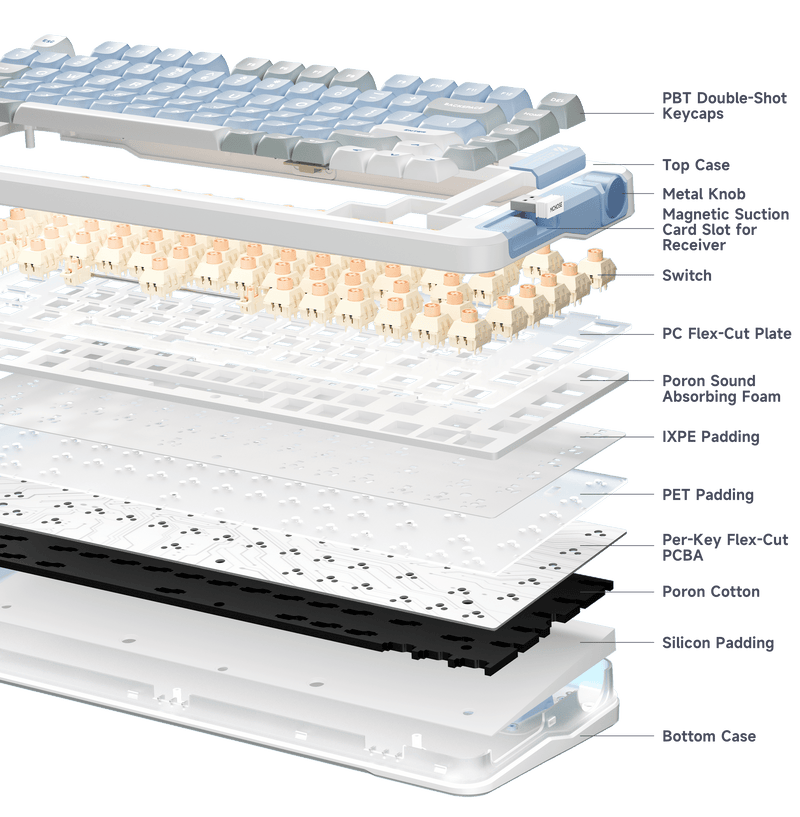 Kompaktna, ali robusna, MCHOSE X75 koristi naprednu gasket strukturu koja pruža stabilno i tiho tipkanje. Njezina konstrukcija osigurava optimalan balans između odzivnosti i udobnosti, čineći svako tipkanje ugodnim i preciznim