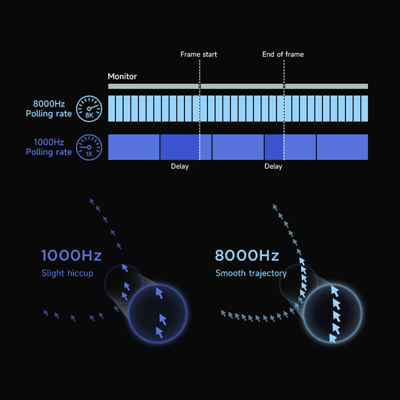 MCHOSE AX5 Pro Max donosi vrhunsku izvedbu s impresivnom frekvencijom osvježavanja od 8000 Hz i vremenom odziva od 0,125 ms. Opremljen naprednim prijamnikom za nenadmašnu brzinu, preciznost i ultra-glatko, stabilno praćenje, ovaj miš je savršen za ozbiljne gamere.