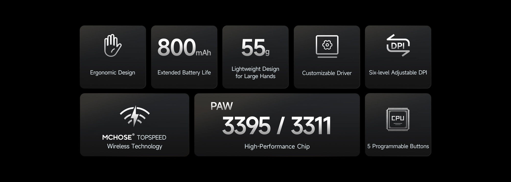 G7 koristi MCHOSE TOPSPEED bežičnu tehnologiju koja omogućuje ultra-brz odziv i iznimnu preciznost za potpunu kontrolu. Zahvaljujući visokoj učinkovitosti prijenosa podataka, nudi glatko, bezodgodo povezivanje — savršeno za zahtjevne igre i profesionalne zadatke.