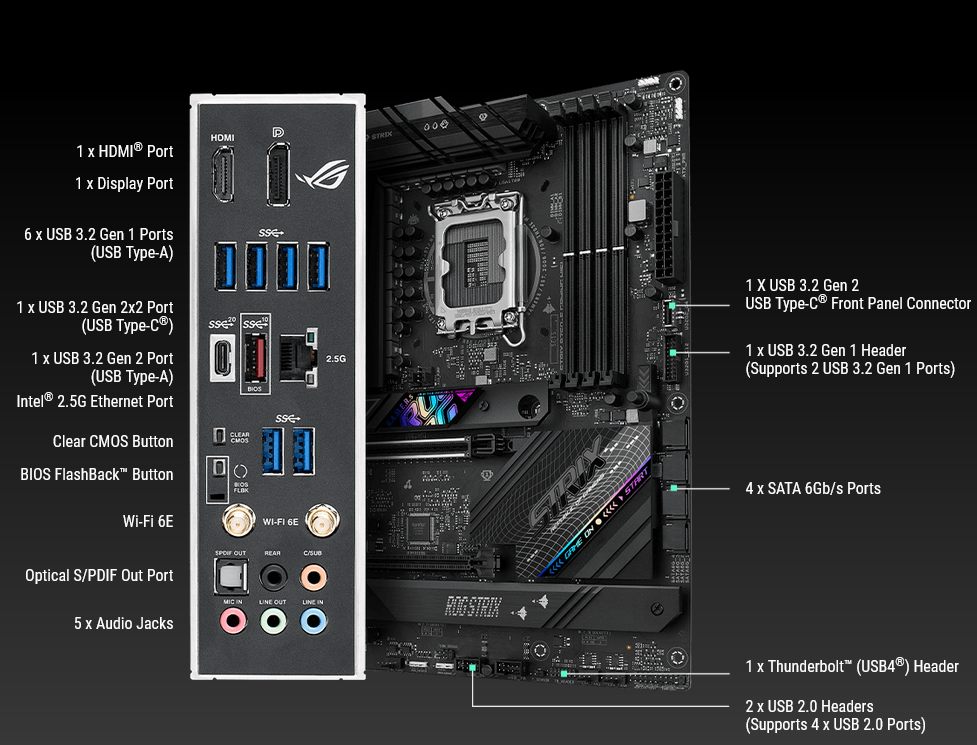 Skočite u budućnost s ROG Strix B760-F, fantastičnom nadogradnjom na 14. generaciju s dominantnim rješenjem za napajanje i najboljim DDR5 brzinama u klasi. Njegov PCIe 5.0 utor sljedeće generacije pruža nevjerojatnu propusnost grafičke kartice za maksimalni FPS, a možete smanjiti kašnjenje putem hiperbrzog WiFi 6E ili 2.5G LAN-a. Sve ove pogodnosti dolaze uz prepoznatljive dugine pruge i retro detalje kako biste mogli pokazati svoj gamerski ponos. Ova platforma pruža snagu i povezivost koje zahtijevaju napredne AI PC aplikacije.