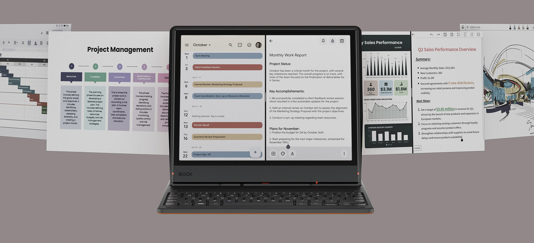 Zahvaljujući snažnom osmojezgrenom procesoru i 6 GB RAM-a, Note Air5 C s lakoćom obavlja profesionalne zadatke. Višezadaćnost, projekti bilo koje veličine ili osnovni uredski poslovi odvijaju se iznimno učinkovito. Uz BOOX Super Refresh tehnologiju³, svako pomicanje i listanje djeluje brzo i glatko.