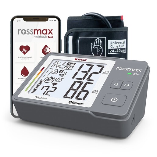 Rossmax Z5 | Automatski tlakomjer s tehnologijom Bluetooth prijenosa podataka na mobitel. Tlakomjer zadnje generacije s Bluetooth® tehnologijom prijenosa podataka za spajanje s pametnim telefonima putem aplikacije.