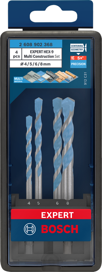 BOSCH Professional set svrdla EXPERT HEX-9 Multi Construction 4/5/6/8mm, 4 kom.ID EK000804681