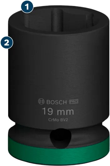 Izradili smo utičnice u PRO Impact Socket Setu od toplinski obrađenog CRMO (krom-molibden) čelika i dali smo im debele stijenke kako bismo bili sigurni da će izdržati veliki zakretni moment. Dodali smo crni fosfatni premaz kako bismo ih zaštitili od hrđe i korozije. Utičnice su laserski označene i kodirane bojama tako da odmah možete vidjeti onu koja vam je potrebna. Imaju utor i prolaznu rupu za njihovo pričvršćivanje na vaš udarni ključ, pomoću naše igle i prstena – kad god vam je potrebno dodatno čvrsto držanje. Adapteri vam omogućuju korištenje utičnica s udarnim odvijačima i imbus nastavcima s udarnim ključevima za sve lakše zadatke ispod 80 Nm okretnog momenta.
