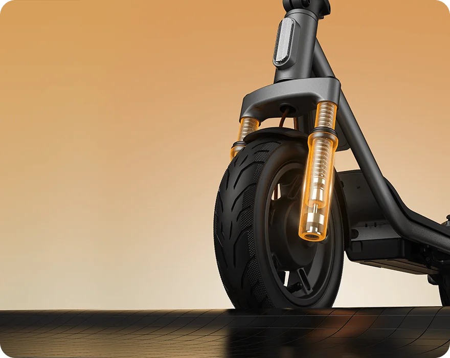 Opremljen visokoučinkovitim prednjim ovjesom s dvostrukim oprugama i hodom od 25 mm, učinkovito apsorbira udarce pri kontaktu, smanjujući neravnine na cesti za udobnu i glatku vožnju.