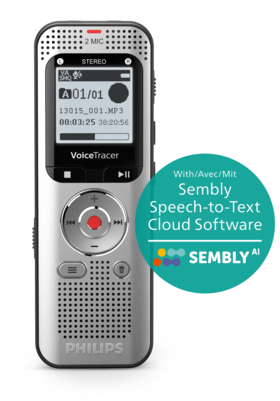 Savršen audio snimač za jednostavno snimanje glasovnih zapisa, uključujući bilješke, intervjue i manje sastanke. Zahvaljujući izvrsnoj kvaliteti zvuka, dugotrajnoj bateriji i velikoj proširivoj memoriji, predstavlja idealnu alternativu snimanju putem pametnog telefona. U kombinaciji sa Sembly AI Cloud softverom za pretvaranje govora u tekst, svoje snimke možete brzo i precizno pretvoriti u tekst. Jednostavno prenesite svoje datoteke u Sembly kada se vratite za računalo i dopustite da automatski pretvori vaše snimke u tekst.