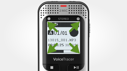 Veliki zaslon s pozadinskim osvjetljenjem omogućuje jasan pregled svih važnih informacija o datotekama na prvi pogled, što olakšava navigaciju čak i pri slabom osvjetljenju.