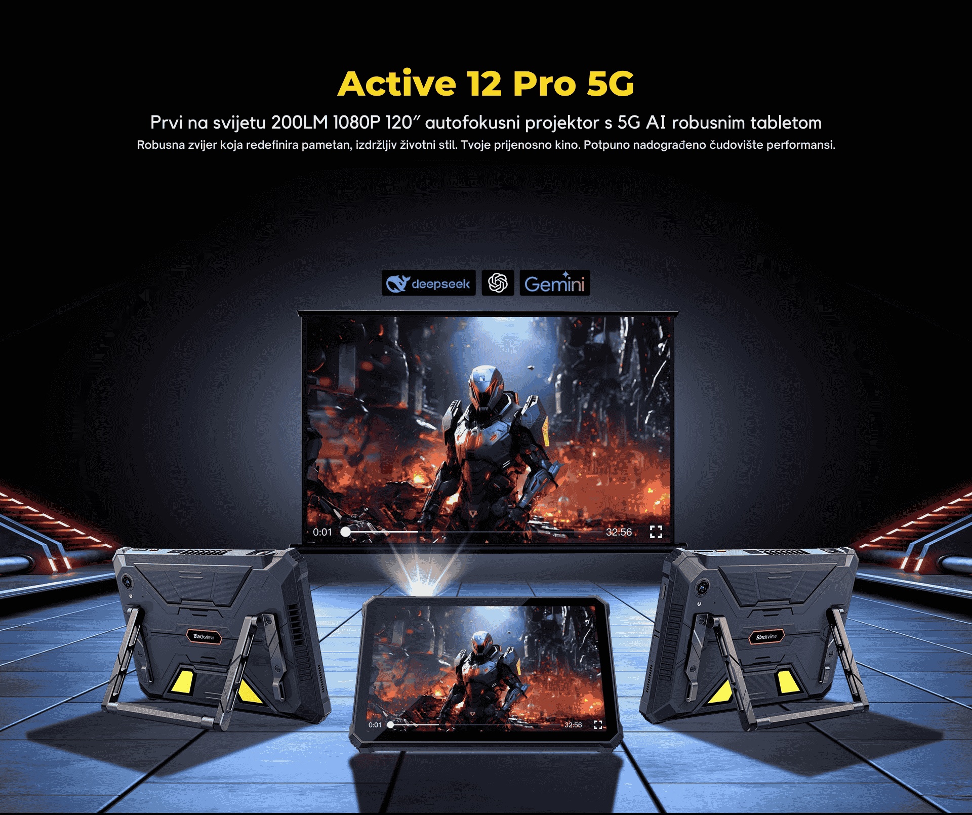 Blackview Active 12 Pro je vrhunski robusni tablet dizajniran za korisnike koji traže moćan uređaj otporan na sve uvjete – bilo da se radi o gradilištu, terenskom radu, avanturističkom putovanju ili kućnom projektoru za zabavu. S ugrađenim 120” projektorom u 1080p rezoluciji, ogromnom 30000 mAh baterijom, 5G povezivošću i 108 MP AI kamerom – Active 12 Pro nije samo tablet, već multifunkcionalna mobilna platforma.