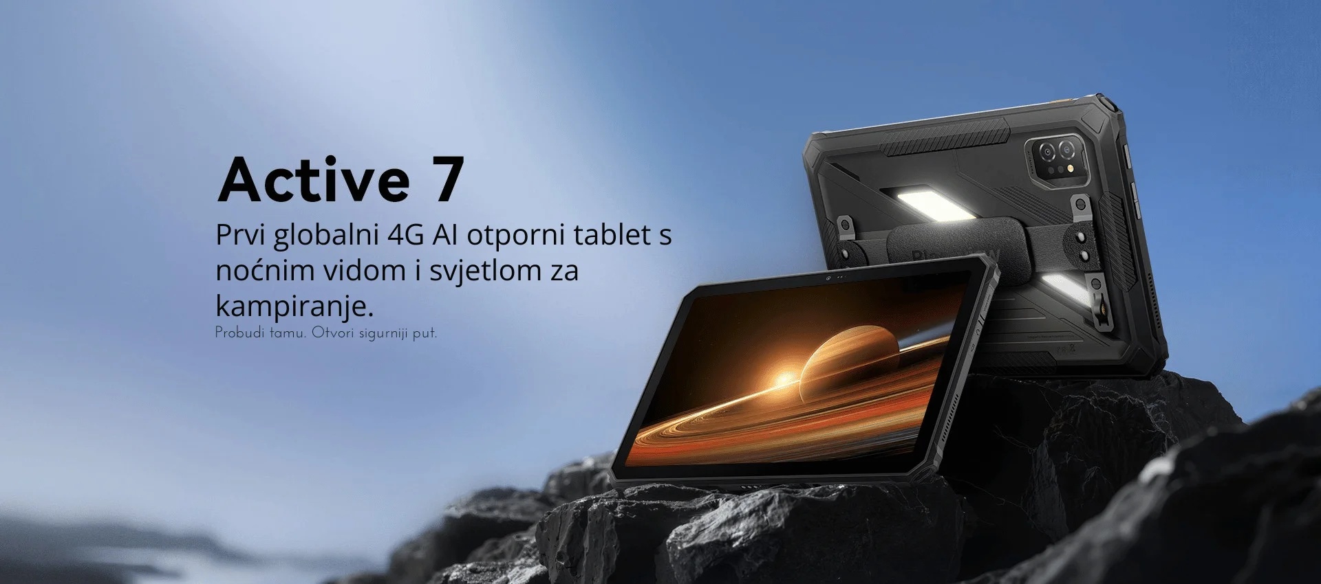 Jedna od glavnih prednosti modela Active je njegova sposobnost da preživi — s robusnim kućištem, pojačanim rubovima i zaštitnim slojevima, ovaj uređaj je certificiran za rad u teškim uvjetima. Kad je okoliš mračan, ugrađena LED svjetiljka / kamp lampica dolazi kao spas, omogućujući ti da radiš, čitaš ili snimaš čak i bez dodatnog izvora svjetla. Active 7 je više od uređaja — on je alat spreman na izazove.