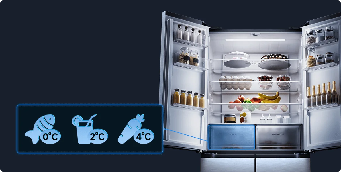 Hladnjak se neprekidno nadzire 24/7 za vašu bezbrižnost. Ako vrata ostanu otvorena dulje od 2 minute, aktivirat će se alarm, a putem aplikacije Xiaomi Home bit će poslana obavijest – kako bi vaša hrana ostala svježa, a potrošnja električne energije niža.