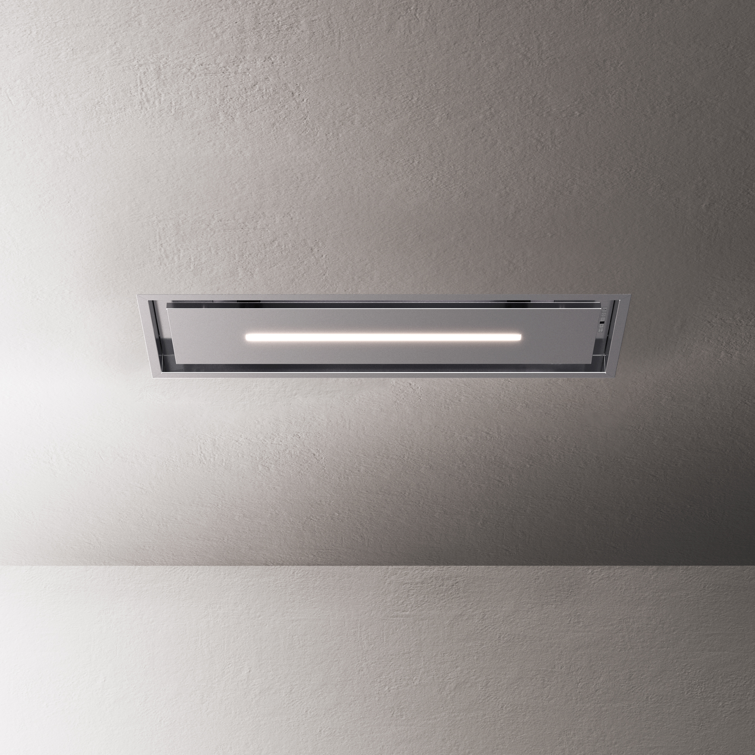 This is a system called perimetral aspiration which conveys the fumes on the sides of the panels, allowing to have a nicer design, to reduce the noise of the hood, to increase the capturing of the fumes and to simplify the cleaning operations of the products.