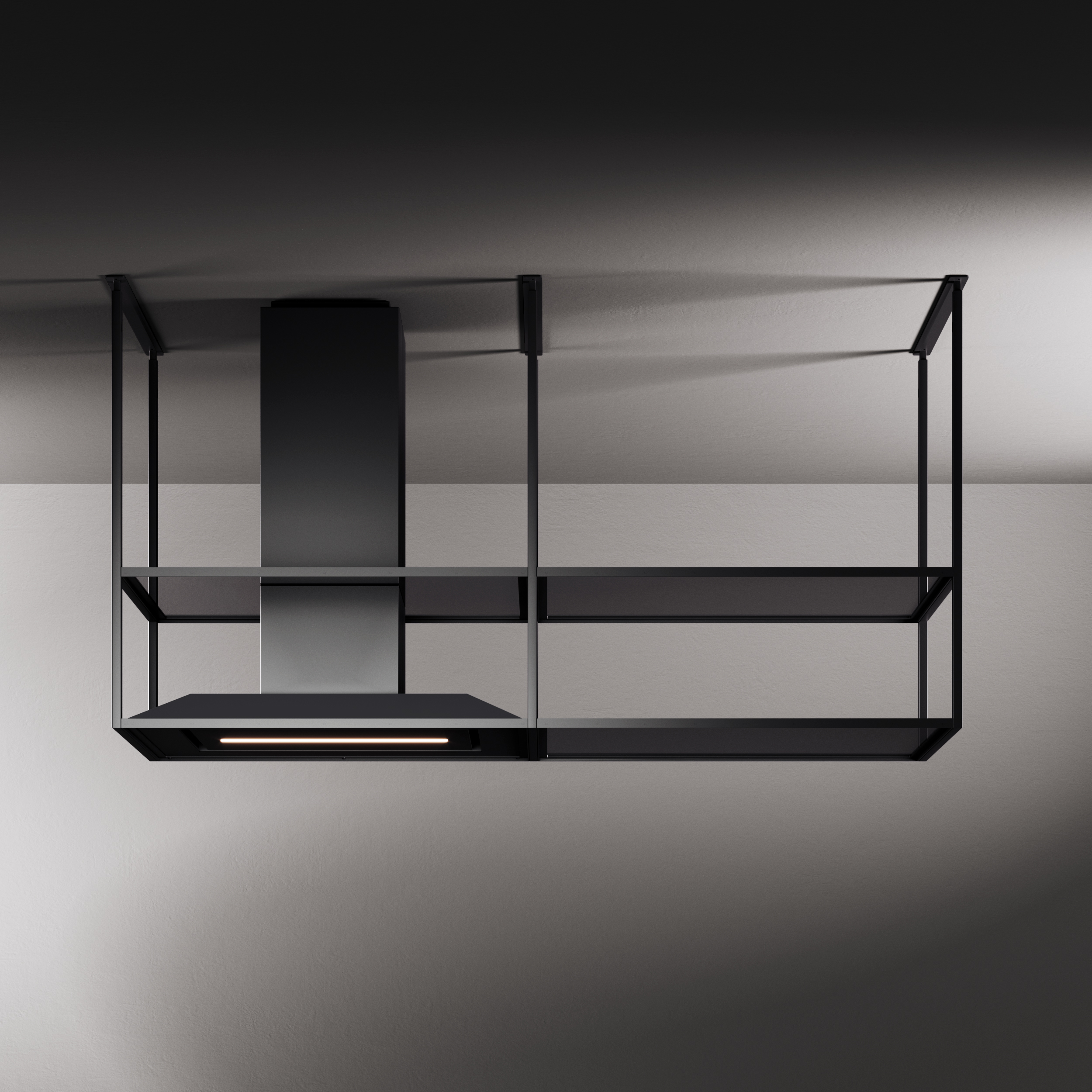 This is a system called perimetral aspiration which conveys the fumes on the sides of the panels, allowing to have a nicer design, to reduce the noise of the hood, to increase the capturing of the fumes and to simplify the cleaning operations of the products.